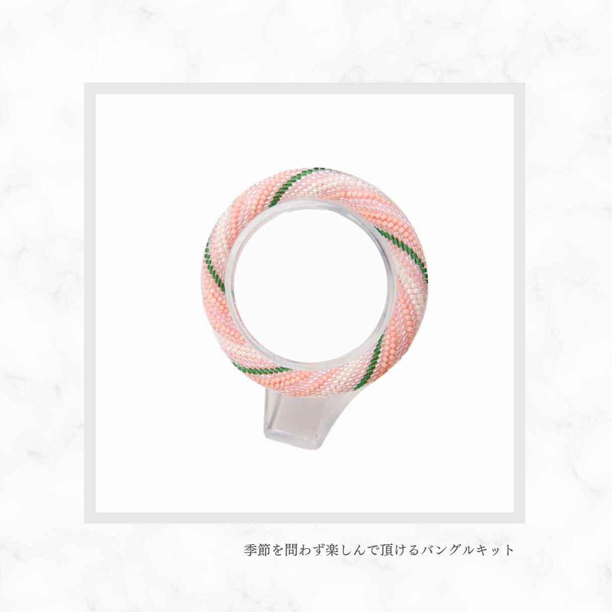 編みやすいスパイラル柄とやさしいいちごミルクカラーが魅力のバングルキット。